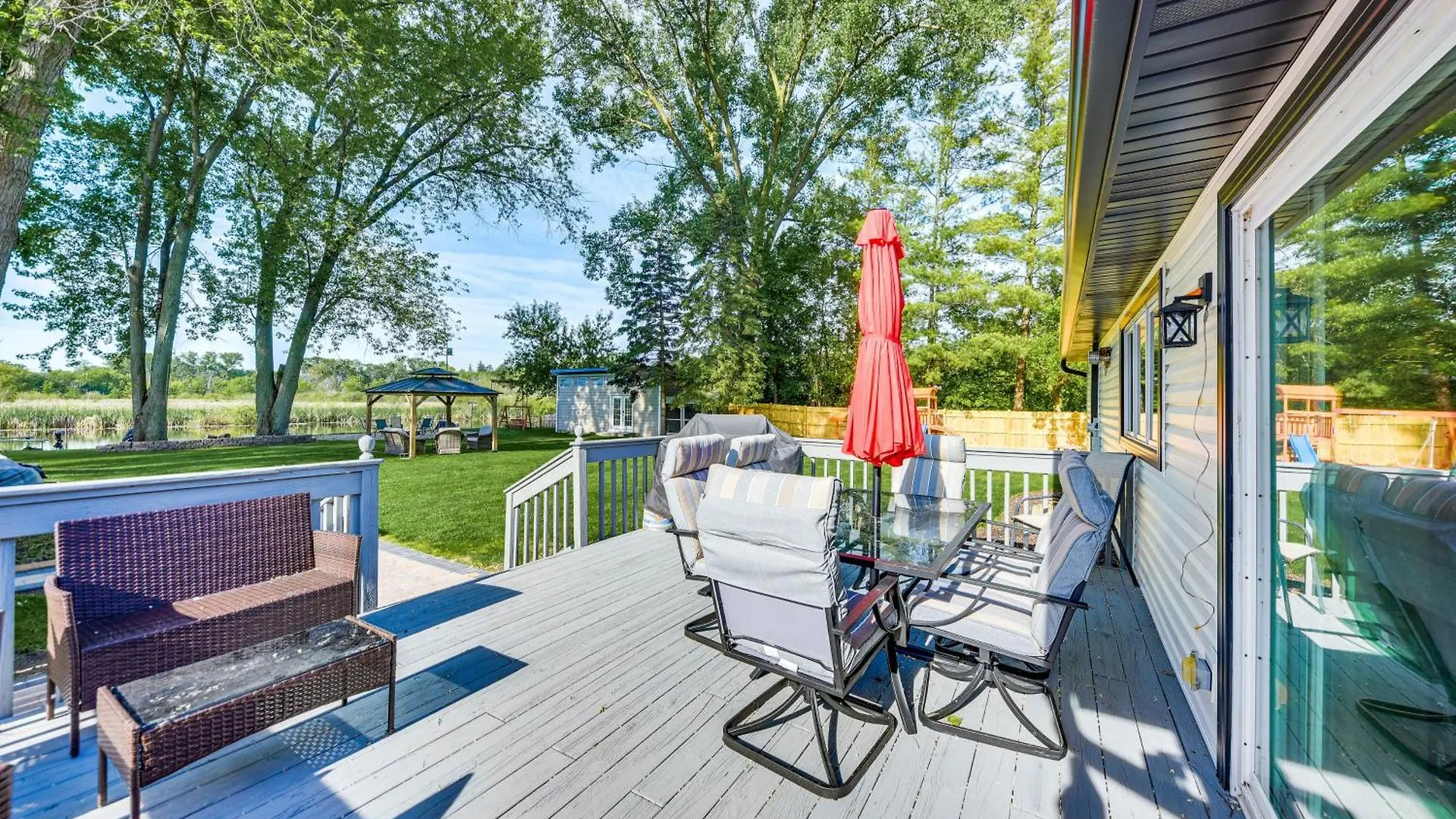 This villa is equipped with a fridge, a kitchenware, and a dishwasher for self-catering in an outdoor dining area. Guests can easily reach Chicago O'Hare International airport, located 47 miles from this Antioch property.